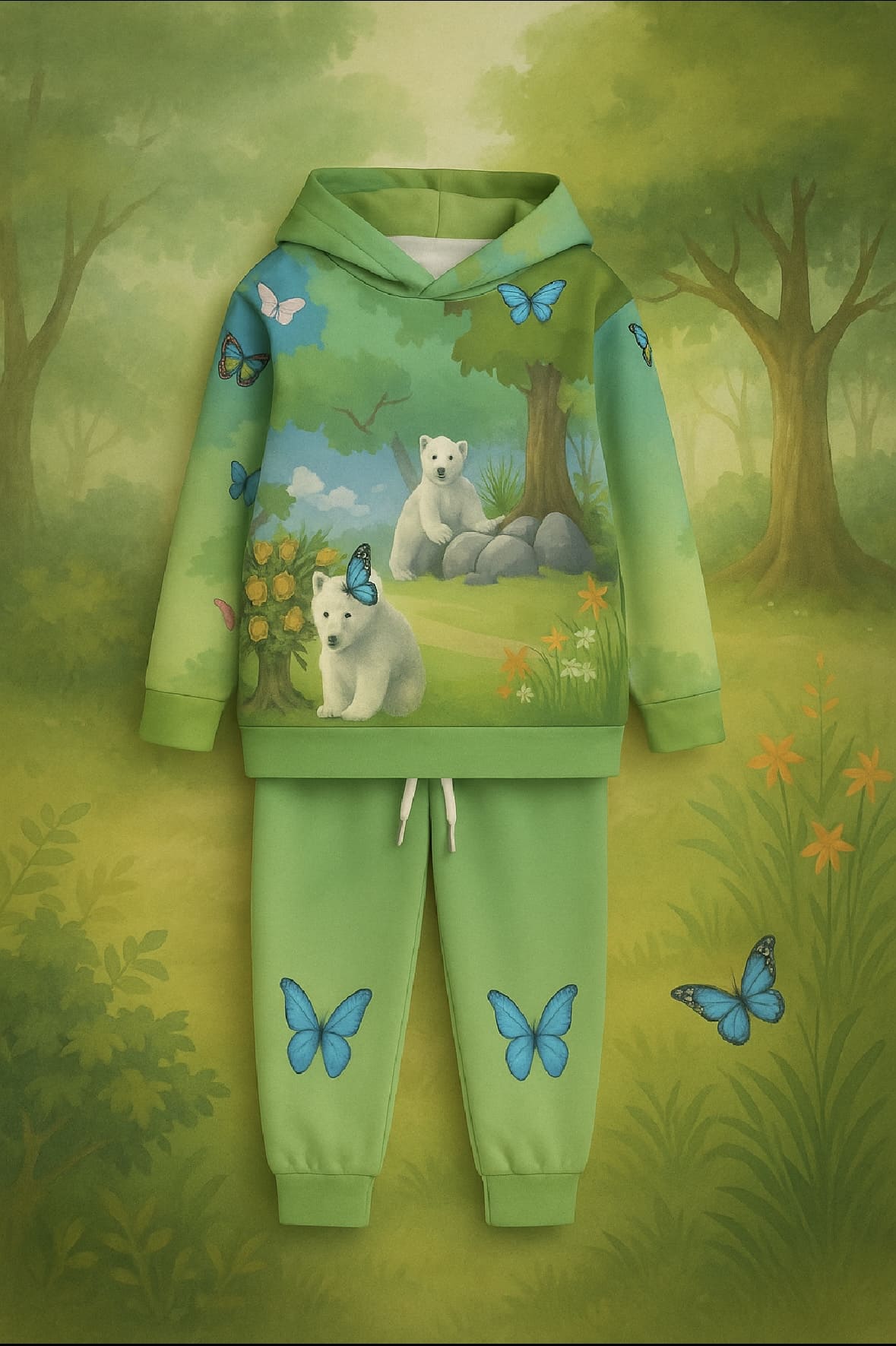 Laissez votre enfant explorer la magie de la forêt enchantée avec cet ensemble complet mettant en vedette un adorable ours polaire et des papillons colorés.