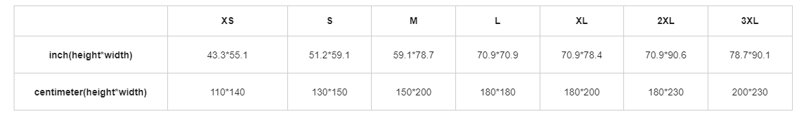 pouces (hauteur*largeur) 43.3*55.1 51.2*59.1 59.1*78.7 70.9*70.9 70.9*78.4 70.9*90.6 78.7*90.1