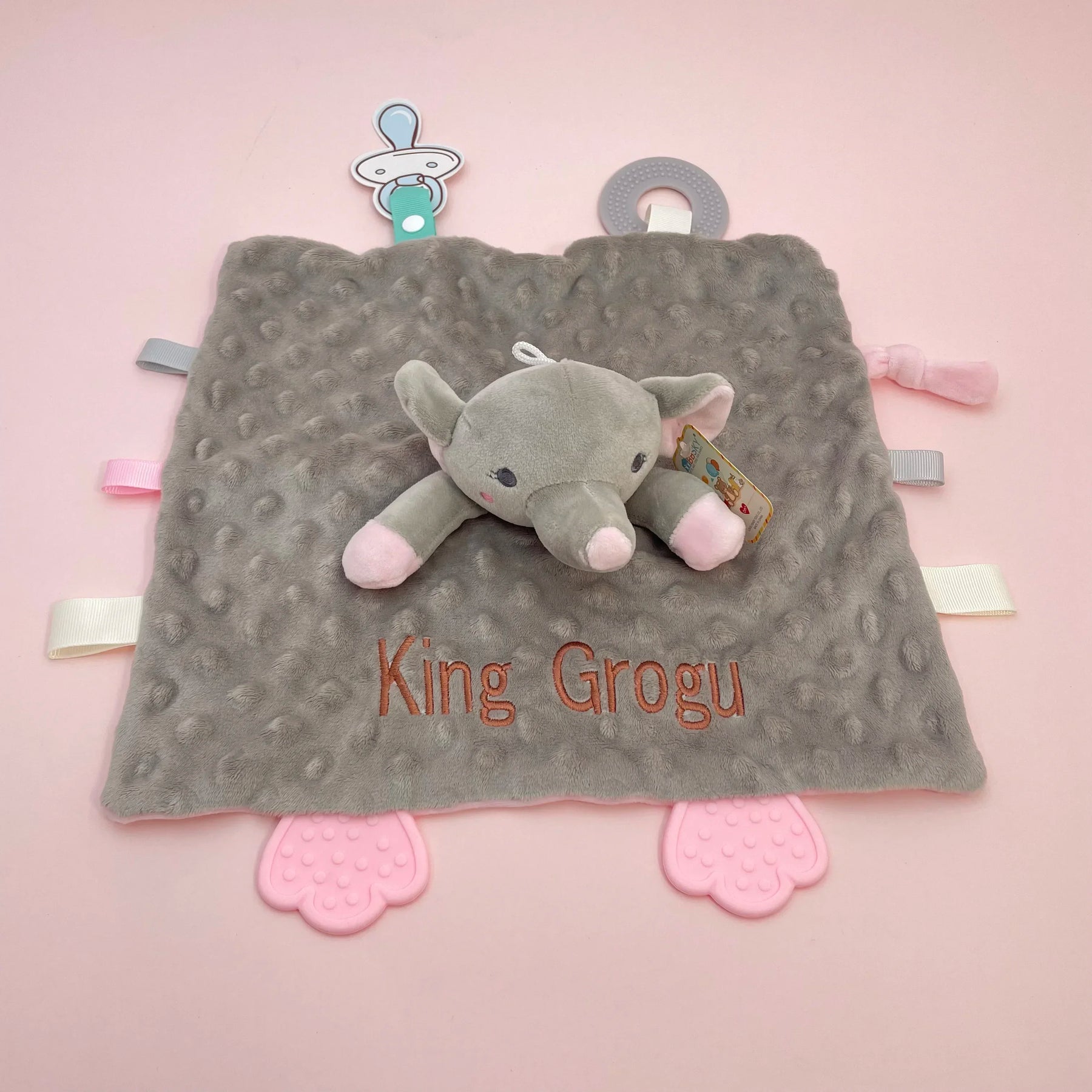 Offrez un doudou personnalisé avec le prénom du bébé ! Cette adorable couverture réconfort deviendra le compagnon préféré de votre petit trésor. Doux, câlin et entièrement personnalisable, c'est le cadeau idéal pour marquer ce moment spécial.